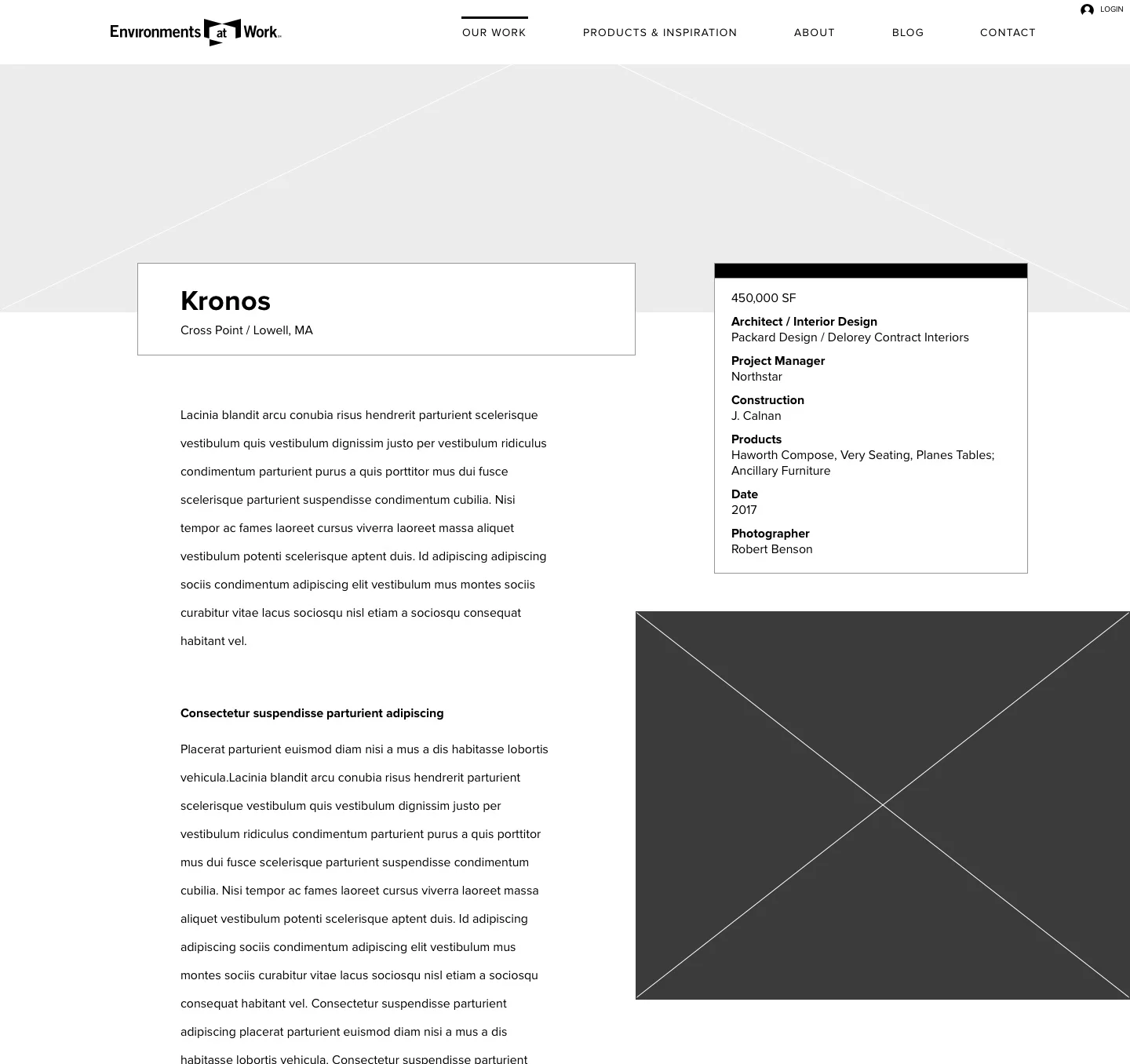Potential clients, architects, interior designers, and project managers need a project to go off without a hitch. Focusing content on the service EAW provides was key in getting their buy-in. For this reason, all mentions to product would be in the context of a completed project where they would also have the opportunity to talk about the team involved, the challenges encountered, and the problems solved.